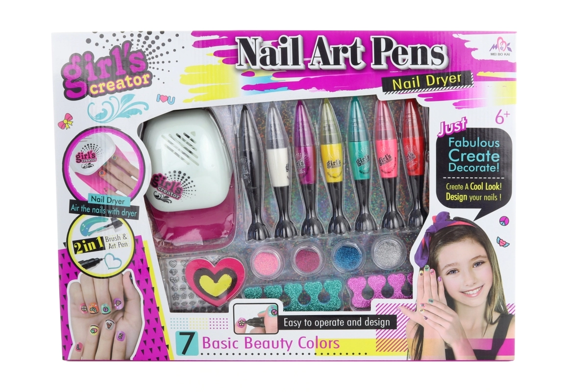 Acest set pentru unghii distractiv și ușor de folosit le permite copiilor să-și exprime creativitatea și să creeze designuri originale ca într-un salon profesionist. Datorită lacurilor cu două capete cu pensulă fină și stilou precis, decorarea este rapidă și comodă, iar uscătorul de unghii accelerează uscarea și reduce așteptarea.