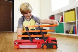 Mega Transporter Hot Wheels 50. aniversare este un camion de joacă mare, care aduce multă distracție și aventuri uimitoare. Cu cele șase niveluri extensibile poate găzdui până la 50 de mașinuțe și este decorat cu grafice speciale pentru a 50-a aniversare a mărcii.