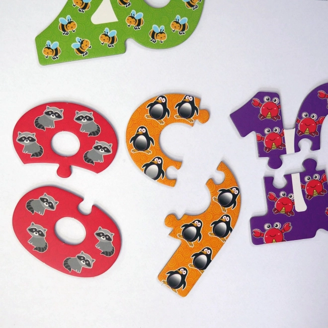 Explorați lumea numerelor prin acest puzzle deosebit, ideal pentru copiii mici. Piesele colorate și ușor de prins încurajează învățarea distractivă: