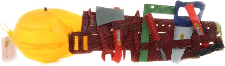 Set de unelte din plastic, excelent pentru micii meșteri, care include o cască și o curea. Potrivit pentru copii de la 3 ani.