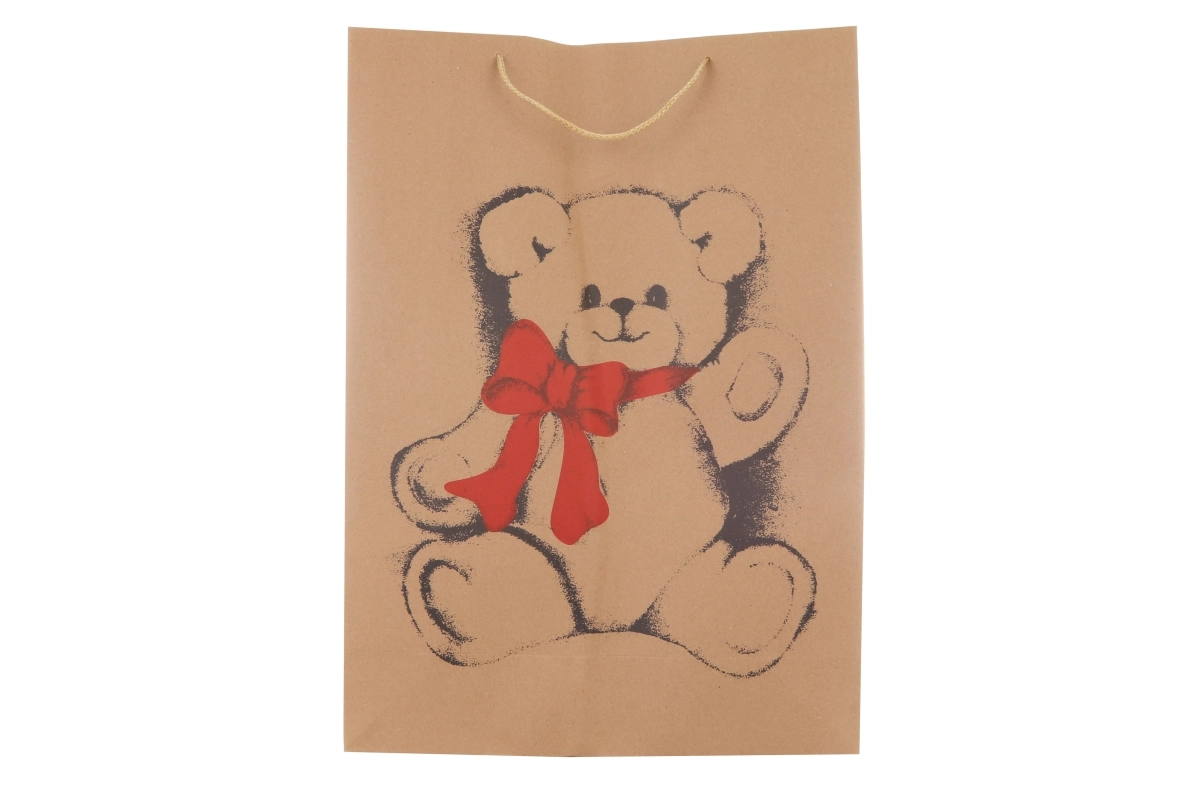 Pungă cadou stilată cu motiv urs în mărime maxi, care încântă la fiecare oferire de cadou. Datorită dimensiunilor, este ideală pentru pachete mai mari și are un aspect reprezentativ. Execuție solidă, aspect decorativ și dimensiuni spațioase pentru ambalarea comodă a cadourilor.