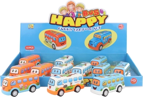 Autobuz din plastic cu motor inerțial, dimensiuni aproximative 9,5 x 4,5 x 4 cm. Dimensiuni ambalaj aproximative 40 x 23,5 x 5,5 cm. Vârstă 3+