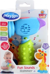 Oferiți-le micilor exploratori multe momente de bucurie cu ciocănelul PLAYGRO, care la lovire emite patru sunete vesele și aprinde efecte luminoase. Jucăria sprijină dezvoltarea motricității, înțelegerea cauzei și efectului, precum și percepția senzorială.