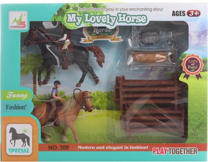 - 2 cai, 2 călăreți, țarc și alte accesorii