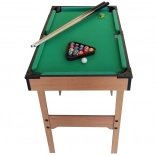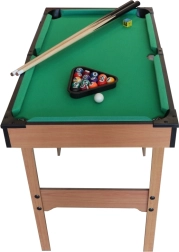 Masa de biliard compactă pentru copii, realizată din lemn de calitate, oferă distracție grozavă pentru jucători mici și mari. Pachetul include 2 tacuri, 16 bile de biliard și accesorii complete. Datorită dimensiunilor, este ideală pentru camera copilului și pentru primele cunoștințe cu regulile jocului.