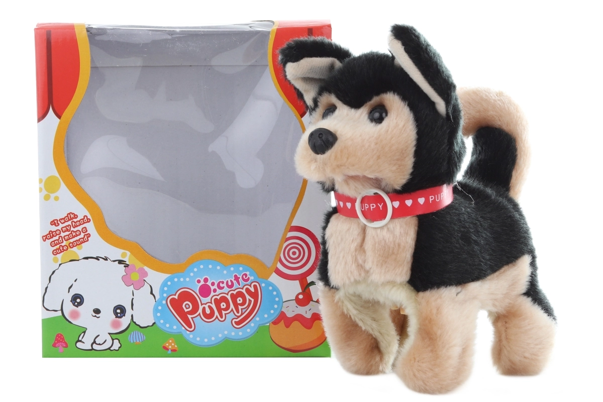 Acest căţeluş plușat mergător este un companion grozav pentru micii iubitori de animale. După pornire, merge și scoate sunete de lătrat, imitând un cățel adevărat și stimulând imaginația copiilor și jocul interactiv.