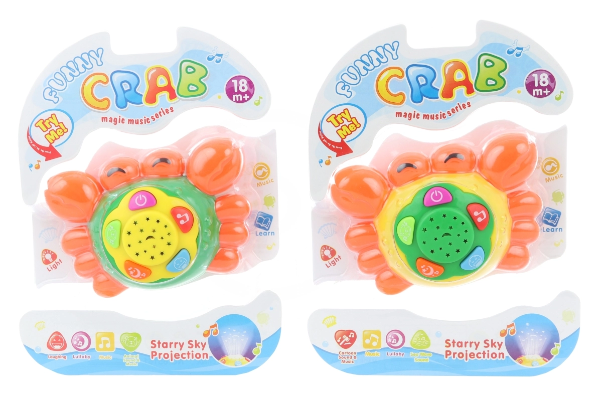 Crabul drăgălaș din plastic îi va încânta pe cei mici cu lumini și sunete vesele. Doar apasă butoanele și jucăria se aprinde și cântă. Ideal pentru primele descoperiri și dezvoltarea simțurilor. Se aprinde și emite sunete, ușor de utilizat, sigur pentru copii de la 18 luni, bateriile sunt incluse în pachet.