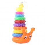Stâlpul drăguț cu inele în formă de melc va încânta orice copil mic. Prin înșirarea treptată a inelelor, copiii își exersează răbdarea, gândirea logică și îndemânarea. Ultima piesă este o rățușcă din plastic, care oferă jocului un obiectiv distractiv și motivant.
