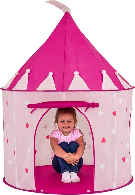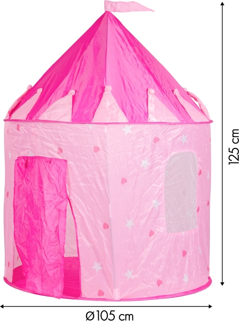 Fiecare copil merită propriul colțișor de joacă. Acest cort de joacă în formă de castel de prințesă oferă un spațiu confortabil și sigur pentru imaginație, v-ați ascunselea și citit. Datorită designului atractiv, cu inimioare și steluțe, se potrivește perfect în camera copiilor, pe terasă sau în grădină.