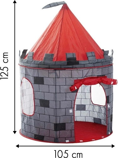 Cortul de joacă pentru copii în stil castel cavaleresc stimulează imaginația și jocul independent. Datorită intrării rulabile, copiii își pot crea ascunzișul lor secret, în timp ce cele două ferestre din plasă asigură circulația aerului și vizibilitatea către exterior. Ideal pentru bătălii de cavaleri, lectură și relaxare liniștită.