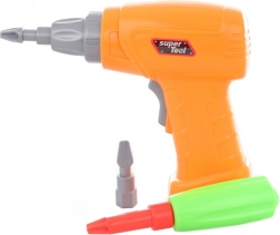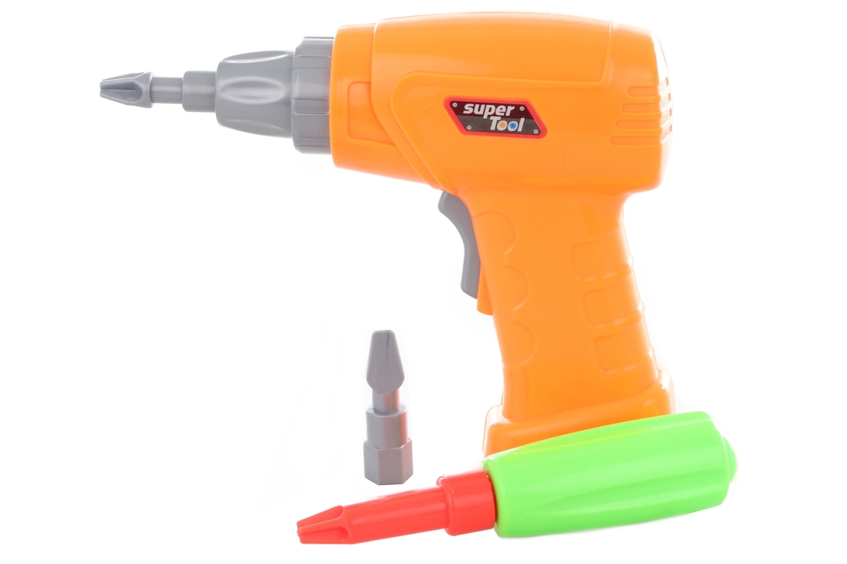 Înșurubare plină de acțiune cu bormașina portocalie și biți interschimbabili, care dezvoltă coordonarea și întărește degetele. Alimentare cu 2× baterii AA (neincluse).