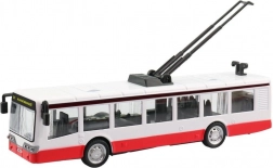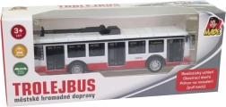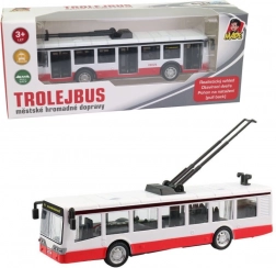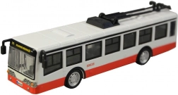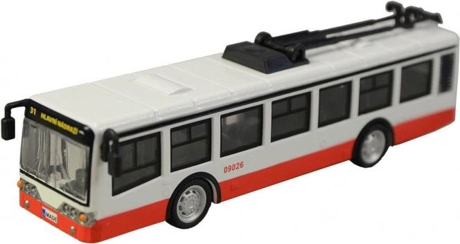 Descoperă un troleibuz detaliat în combinația tradițională de culori roșu-alb-negru, așa cum o cunoști din unele orașe cehe. Modelul este realizat din metal de calitate, completat cu elemente din plastic, fiind în același timp solid și ușor pentru mâna copilului. Datorită mecanismului cu întoarcere (pull-back), troleibuzul pornește singur după eliberare și oferă multă distracție.