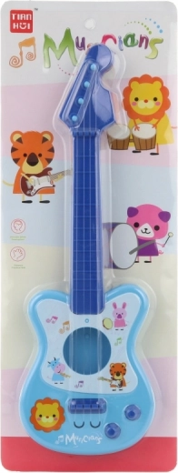Această chitară ușoară și rezistentă este o alegere excelentă pentru micii începători. Datorită dimensiunii de aproximativ 11,5 × 38 cm, se ține confortabil în mână și sprijină dezvoltarea ritmului, motricității și creativității. Aspectul atractiv, în albastru, îi va captiva pe copii și îi va încuraja să cânte.