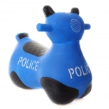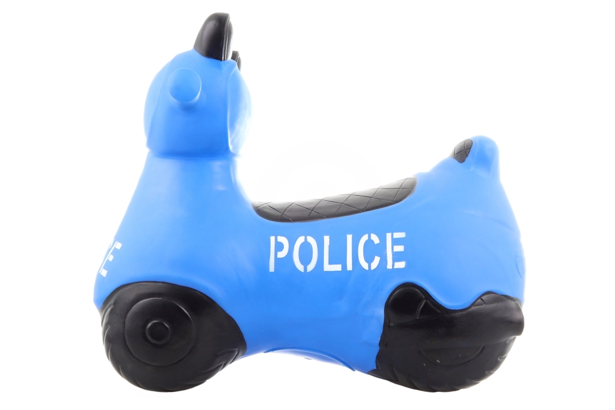 Hopsă din cauciuc amuzantă în formă de motocicletă, cu motiv de poliție, pentru copii de la 1 an. Susține dezvoltarea echilibrului, motricității grosiere și coordonării, este stabilă, rezistentă și ușor de curățat. Pachetul include o pompiță pentru umflare rapidă.