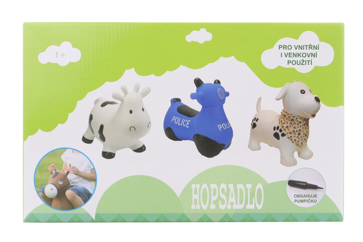 Hopsă ajută copiii să dezvolte stabilitatea, coordonarea mișcărilor și forța membrelor inferioare. Aspectul de poliție stimulează imaginația și jocurile de role-play. Pompița practică din pachet permite punerea rapidă în funcțiune.