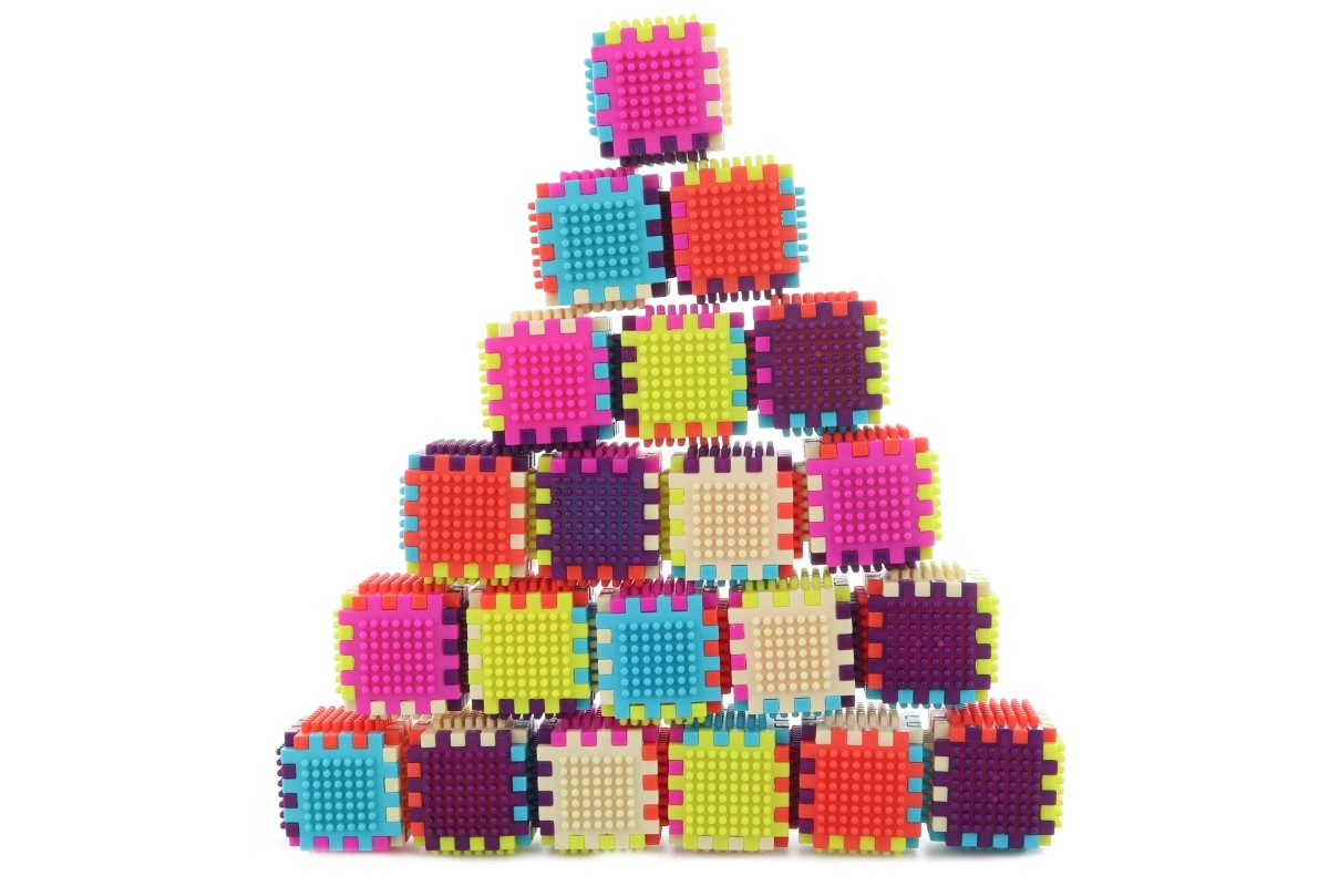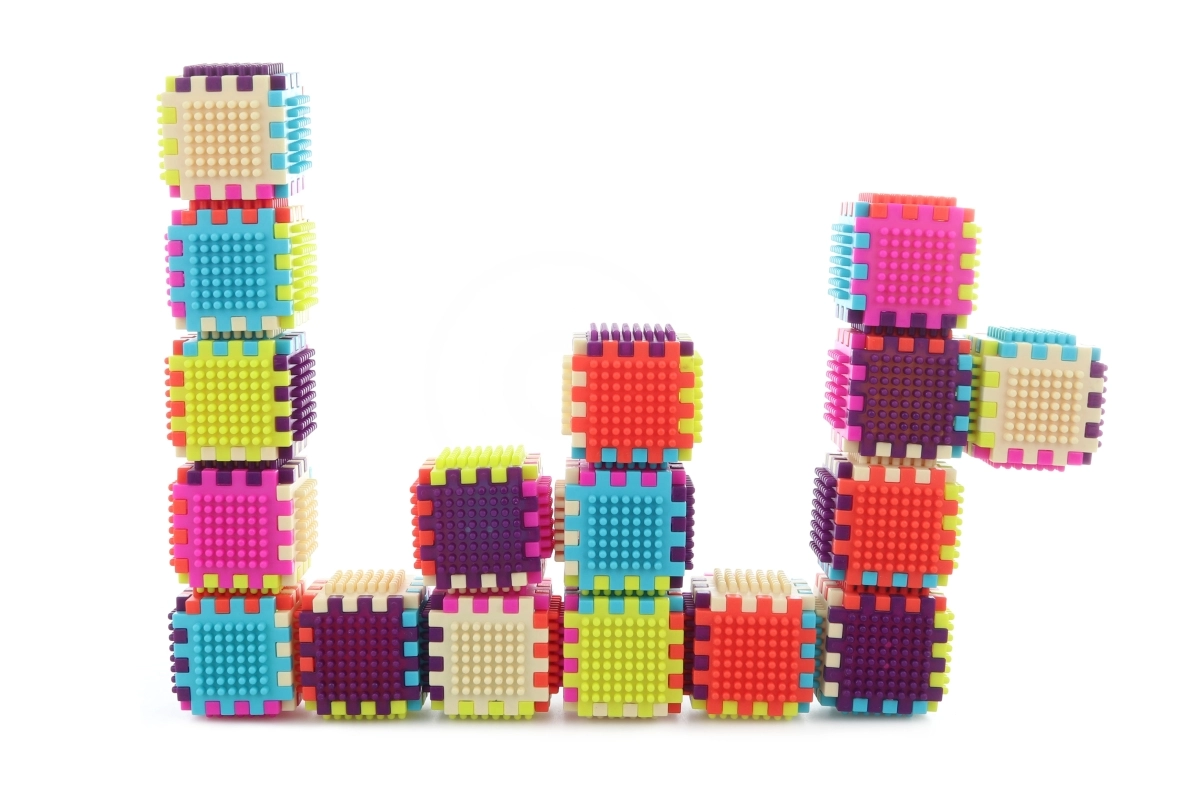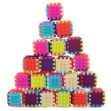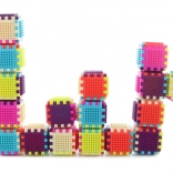 Culorile vii și cărămizile ușor de îmbinat îi inspiră pe copii să creeze turnuri, căsuțe și obiecte fantastice.