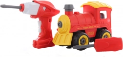 Acest trenuleț cu șuruburi oferă copiilor o dublă bucurie – mai întâi îl asamblează cu ajutorul uneltelor incluse, apoi îl pot controla de la distanță. Motorul detașabil din bormașină se introduce ușor în locomotivă, care pornește la comanda telecomenzii. Jucăria dezvoltă răbdarea, coordonarea mână-ochi și susține gândirea logică.