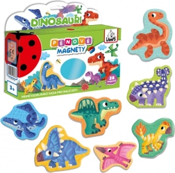 Adu bucurie și educație în camera copilului cu magneții colorați din spumă cu dinozauri. Acești magneți rezistenți sunt ideali pentru dezvoltarea motricității fine, învățarea culorilor și formelor și pentru joacă creativă. Aderă excelent pe frigider, tablă magnetică și alte suprafețe metalice.