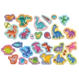În set găsești 28 de magneți detaliați cu dinozauri îndrăgiți. Datorită grosimii de 4 mm, copiii îi pot prinde, aranja și muta cu ușurință. Materialul din spumă este ușor și plăcut la atingere, potrivit pentru joaca zilnică acasă și la grădiniță.