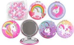 Oglindă de buzunar stilată cu motiv unicorn, cu dimensiuni de 7 × 7 cm, ideală pentru geantă și călătorii. Oferă dimensiune compactă, utilizare confortabilă și design drăguț, care va încânta iubitorii de unicorni. Ambalată în săculeț. Produsul nu este o jucărie.