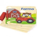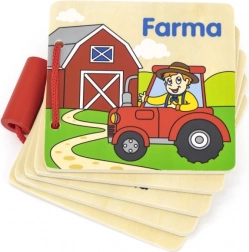 Această cărticică din lemn cu tematică de fermă este un instrument grozav pentru primele întâlniri ale copiilor cu lumea animalelor. Paginile rezistente din lemn, cu ilustrații clare și etichete în limba cehă, ajută la dezvoltarea motricității fine, a vocabularului și a concentrării.