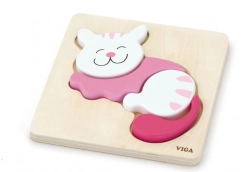 Mini Puzzle de Lemn de la marca renumită Viga pentru copii sunt soluția ideală atât pentru casă, cât și pentru grădinițe. Constau din 4 piese care împreună formează o imagine de pisică.