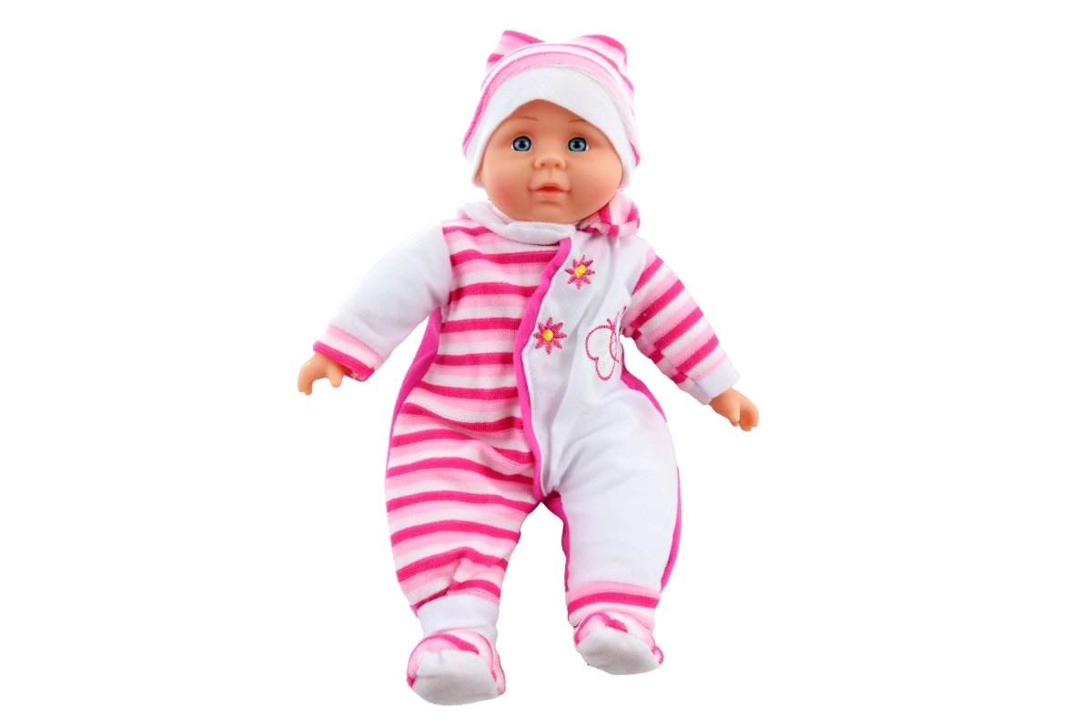 Bebeluș adorabil cu corp moale, ideal pentru primele jocuri de rol și pentru îmbrățișat. Este îmbrăcat într-o pijama comodă cu închidere cu arici, ușor de îmbrăcat și dezbrăcat. Datorită dimensiunii de aprox. 35 cm, se potrivește perfect în mâinile copiilor și susține abilitățile de îngrijire și imaginația copiilor de la 3 ani.