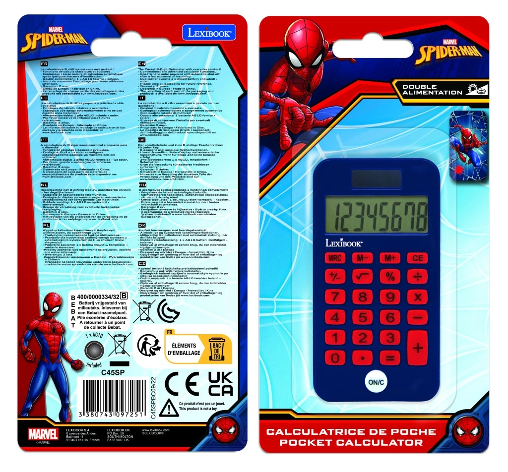 Oferiți-le copiilor un instrument școlar practic și distractiv cu eroul preferat SPIDER-MAN. Acest calculator ușor și mic este ideal pentru călătorii și pentru școală – încape ușor în penar sau în buzunar, iar capacul de protecție previne deteriorarea display-ului și a tastelor.