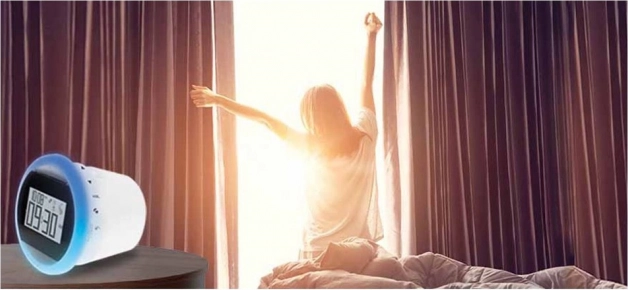 Bucurați-vă de o trezire cu opțiunea de a alege între radio sau melodie și beneficiați de iluminarea nocturnă pentru o atmosferă mai plăcută.