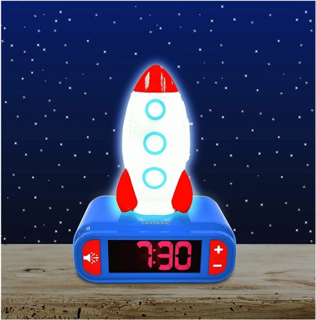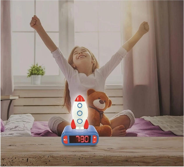 Acest ceas deșteptător fermecător în formă de rachetă este conceput nu doar ca un accesoriu amuzant pentru camera copilului, ci și ca un ajutor util. Datorită butoanelor intuitive de control, copilul dvs. poate seta singur timpul și alarma în formatul 12/24 de ore. Ecranul LCD iluminat asigură orientarea ușoară a copilului fără a afecta somnul. Ceasul oferă șase tonuri tematice diferite și posibilitatea de a adăuga efecte sonore pentru o trezire și mai plăcută.