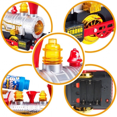 Locomotiva este fabricată din plastic rezistent, are culori vii și o mulțime de detalii decorative care stimulează imaginația copiilor. Datorită funcționării pe baterii, este ideală pentru joacă atât acasă, cât și în deplasare – trebuie doar să introduceți bateriile și să urmăriți cum prinde viață cu lumini, sunete și bule.