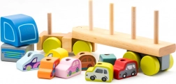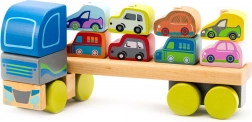 Cubika prezintă un camion de lemn unic cu mașinuțe, care îi va încânta pe copii cu culorile și designul său. Puzzle-ul conține 12 piese și permite transportul a 8 mașinuțe miniaturale. Lungimea camionului este de 32 cm, iar mașinuțele măsoară aproximativ 5 cm fiecare. Jucăria ajută la dezvoltarea:
