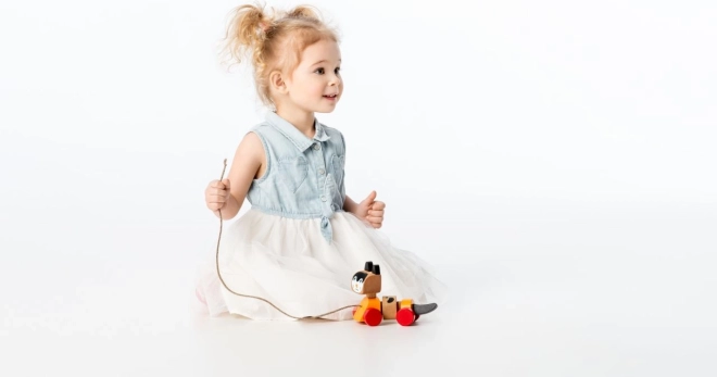 Datorită mobilității și posibilității de a fi trasă, jucăria sprijină dezvoltarea motricității fine.