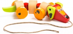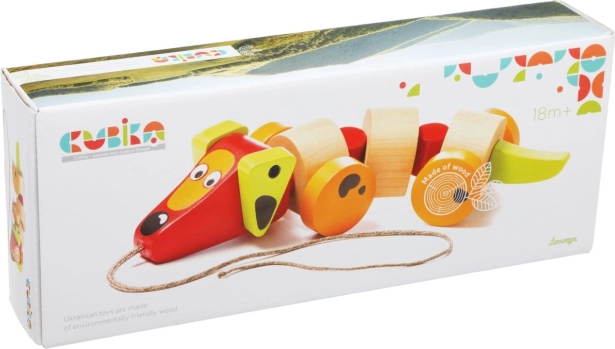 Datorită roților și sforii, jucăria este ușor de manevrat și copiii o pot trage cu ei oriunde merg.