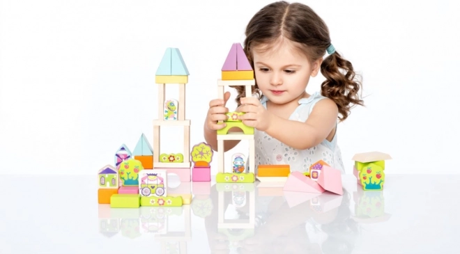 Setul de construcție din lemn Oraș fermecat este alegerea ideală pentru copiii care iubesc să creeze și să-și folosească imaginația. Această colecție conține 55 de cărămizi cu care se pot construi case, poduri, castele și turnuri. Joaca cu cărămizi dezvoltă abilitățile senzomotorii, gândirea logică și creativitatea.