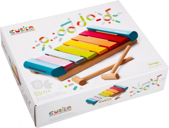 Xilofonul de la brandul CUBIKA este fabricat din lemn ecologic, ceea ce asigură nu doar o calitate înaltă, ci și respect față de mediul înconjurător. Datorită prelucrării precise și designului colorat, devine un element îndrăgit în camerele copiilor.
