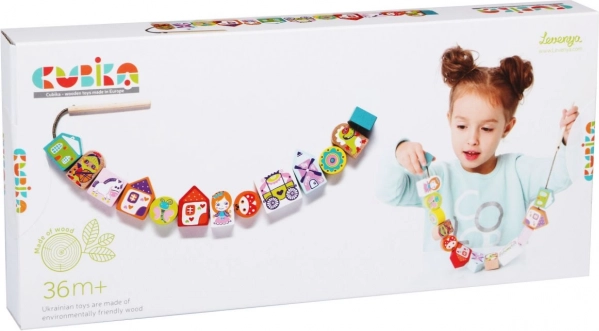 Basmele de Însăilat CUBIKA este un set durabil și sigur destinat copiilor peste 3 ani. Folosește lemn cultivat ecologic și vopsele non-toxice, garantând siguranța și calitatea. Acest set jucăuș sprijină: