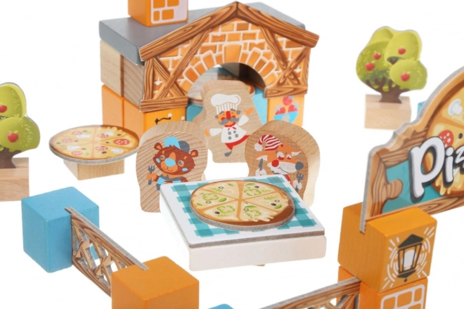 Setul de construcție din lemn Pizzerie de la brandul Cubika oferă copiilor oportunitatea de a se cufunda într-o lume a imaginației și a atmosferei culinare magice a unei pizzerii. Setul conține 30 de piese din lemn și 12 accesorii tematice din carton. Totul este fabricat din materiale de calitate și sigure, care respectă standardele stricte europene.