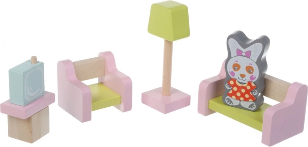 Descoperiți magia jucăriilor Cubika cu camera de living pentru păpuși, care este fabricată din lemn cultivat ecologic cu prelucrare precisă și design modern. Acest set conține 9 piese, inclusiv o canapea din lemn, fotoliu și accesorii magnetice.