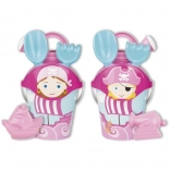 - Echipare completă: găletușă, stropitoare 0,5 l, sită, lopățică, greblă și formă de pirați.