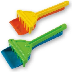 Set practic pentru micii grădinari, conține o lopățică și o greblă realizate din plastic rezistent. Ideal pentru joacă în nisipar și în grădină. Datorită dimensiunilor compacte, se țin bine în mână de către copiii de la 3 ani. Culorile sunt mix și pot varia în funcție de disponibilitatea în stoc.