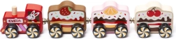 Vagoanele în stil tort de căpșuni, lămâie și cireșe stimulează jocul imaginativ și fac din trenuleț o jucărie atrăgătoare.