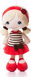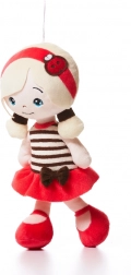 Păpușa de pluș Levenya Anette atrage prin expresia delicată, codițele blonde și ținuta veselă cu accesorii roșii. Datorită greutății reduse și dimensiunii compacte de 30 cm, se ține bine în mânuțele mici și este o prietenă perfectă pentru joacă și somn.