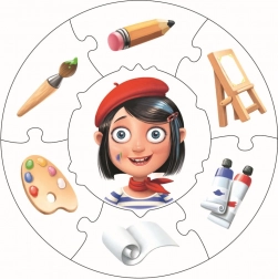 Puzzle-urile educative Puzzlika Profesii 1 le oferă copiilor distracție inteligentă, care susține dezvoltarea unor abilități importante. Din 21 de piese rezistente veți asambla trei scene rotunde separate cu profesii – medic, meșter și pictoriță. Datorită cartonului multistrat de calitate, cu suprafață lucioasă, piesele sunt plăcute la atingere, ușor de întreținut și rezistente.