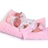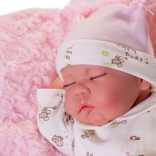 Păpușa Luna arată ca un bebeluș adormit, cu trăsături faciale detaliate și un corp moale din vinil realist, plăcut la atingere.
