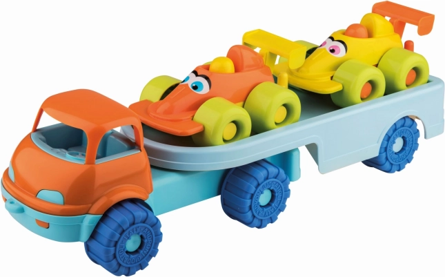 Aduceți bucurie în lumea copiilor cu setul nostru de mașinuțe vesele pe remorcă. Acest set este ideal pentru copiii mai mici datorită formelor rotunjite care asigură siguranța în timpul jocului.