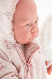 Firicelele de păr, vinișoarele, unghiuțele și sprâncenele fin desenate creează un aspect autentic de nou-născut. Tratamentul special al pielii oferă un efect natural și plăcut la atingere.