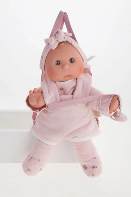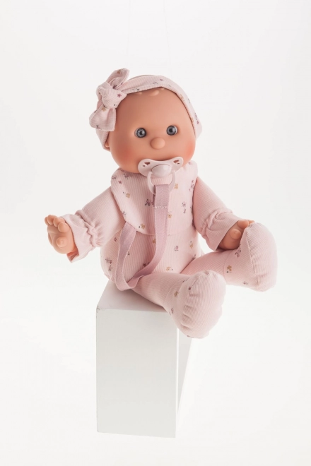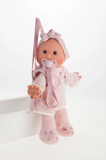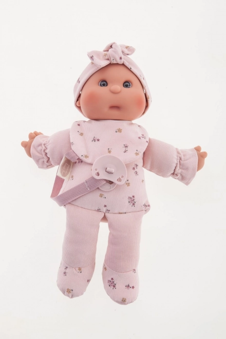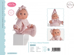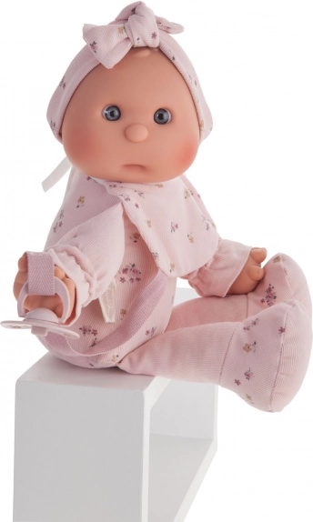 Această păpușă spaniolă lucrată manual încântă prin finețe, calitate și accentul pus pe siguranța copiilor. Trupul moale din material textil este plăcut la îmbrățișat, iar capul și membrele din vinil de calitate, înmuiat, oferă un aspect realist și sunt ușor de întreținut. Datorită suzetei magnetice, copiii se vor bucura de numeroase jocuri autentice cu păpușa.