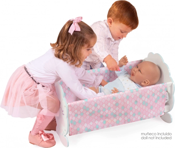 Leagănul este finisat în roz deschis și decorat cu motive adorabile de stele de mare și coadă de sirenă. În pachet se găsește și o perniță moale roz. Păpușa și biberonul nu sunt incluse. Produsul este ambalat într-o cutie cadou în culorile colecției, iar modelele selectate au pe ambalaj un cod QR cu instrucțiuni video pentru montaj ușor.
