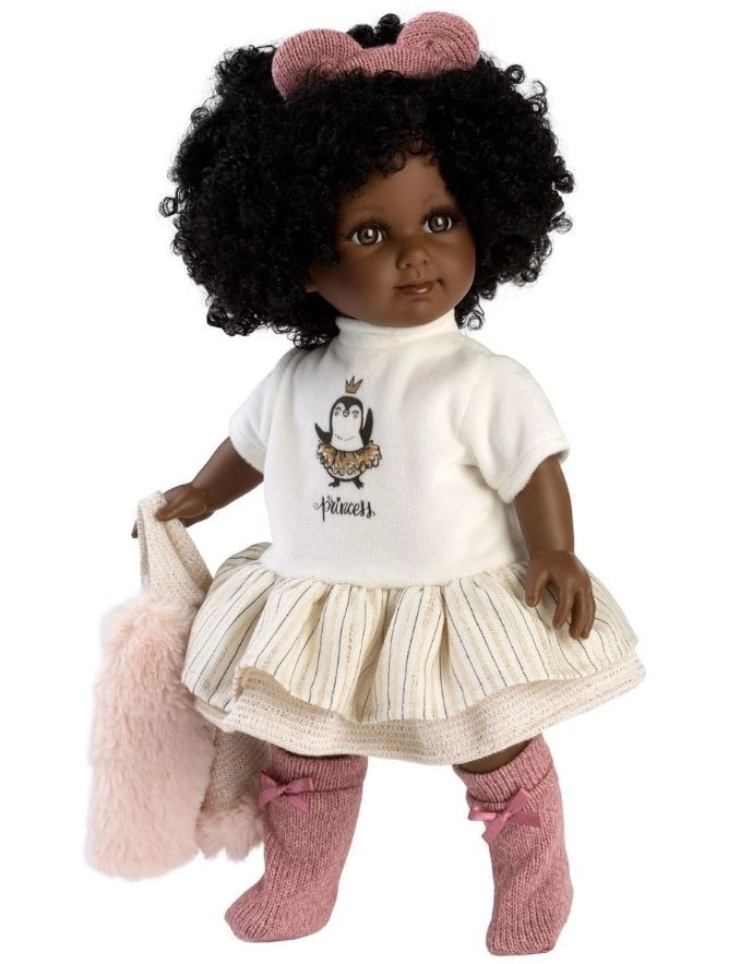 Descoperă fermecătoarea păpușă Llorens Zuri 35 cm – ten mai închis, păr bogat, creț cu fundiță roz și ținută stilată din materiale catifelate. Mâini, picioare și cap din vinil fin, corp textil moale pentru îmbrățișări confortabile. Fabricată manual în Spania, cu siguranță conform normelor UE, pentru un joc de calitate și în siguranță.